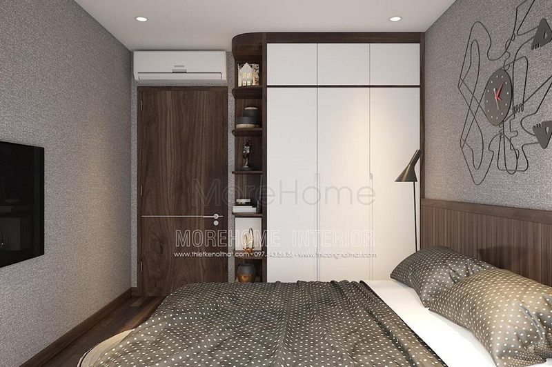 Mẫu cửa gỗ phòng ngủ hiện đại có một cánh màu gỗ óc chó đầy sang trọng và tiện lợi.