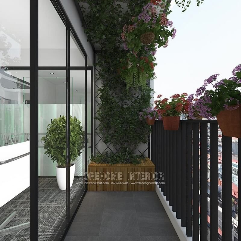 Với sự trang trí của lan can và những chậu cây hoa cảnh, thiết kế ban công văn phòng sẽ trở nên đẹp mắt và tạo ra một không gian thư giãn lí tưởng.