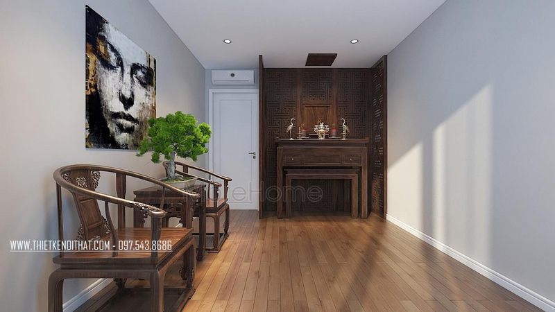 Tạo ra một thiết kế nội thất phòng khách hiện đại với một bàn thờ đẹp, sang trọng cho căn hộ chung cư.