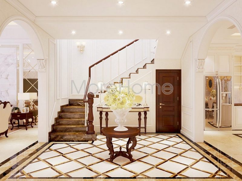 Mẫu thiết kế không gian sảnh chờ hành lang phong cách cổ điển để áp dụng cho biệt thự.